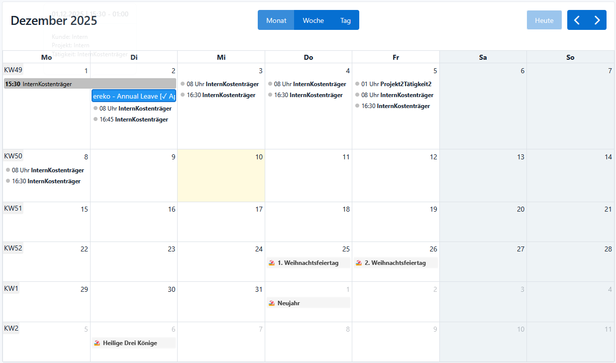 Urlaub, Krankheit, Gleitzeit, Dienstreisen oder interne Status-Abwesenheiten können individuell beantragt werden.